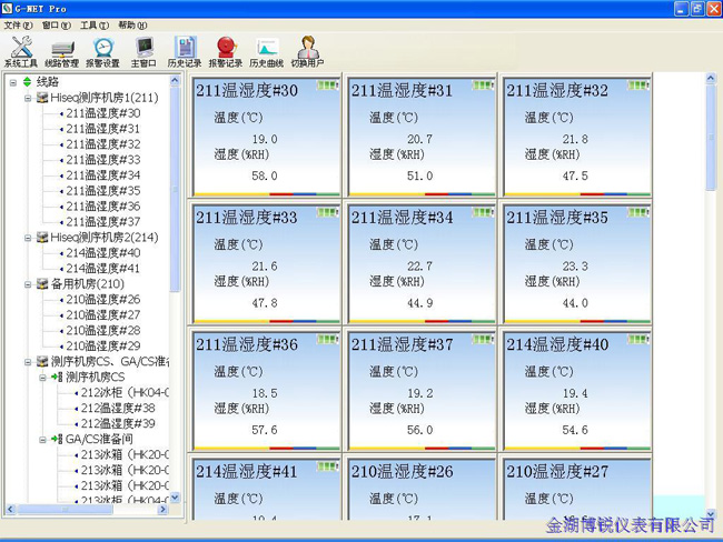 对药品生产车间、存储仓库的温度湿度严格监控和管理。系统能对大面积的多点的温度和湿度进行监测,并将数据传输到PC机上进行数据存储与分析,并输出打印曲线,在设备异常情况下还以多种形式的报警通知相关人员。该系统符合新版GSP标准。